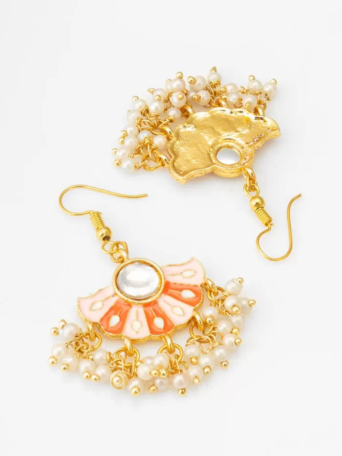 Add a pop of color and elegance to your look with this dual layer pendant necklace set, featuring vibrant enamel work and delicate bead hangings.