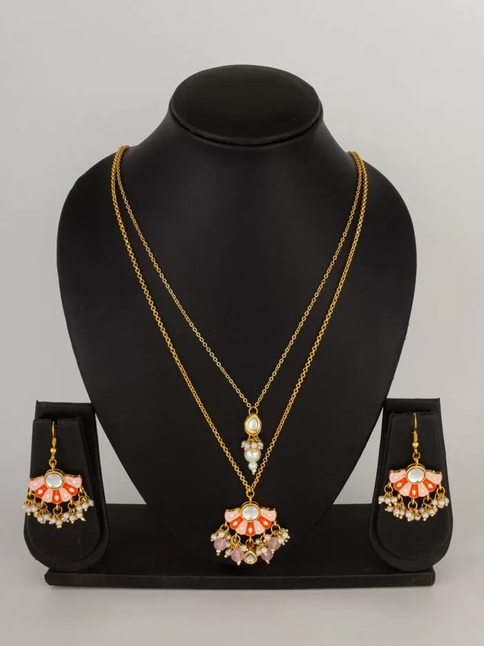 Dual Layer Pendant Necklace Set with Enamel & Bead Detailing