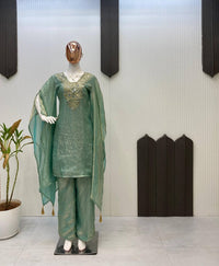 DESIGNER WEAR EXCLUSIVE SUIT IN EMBROIDERED WITH REAL MIRROR WORKED TOP WITH PLAZZO PAIR
