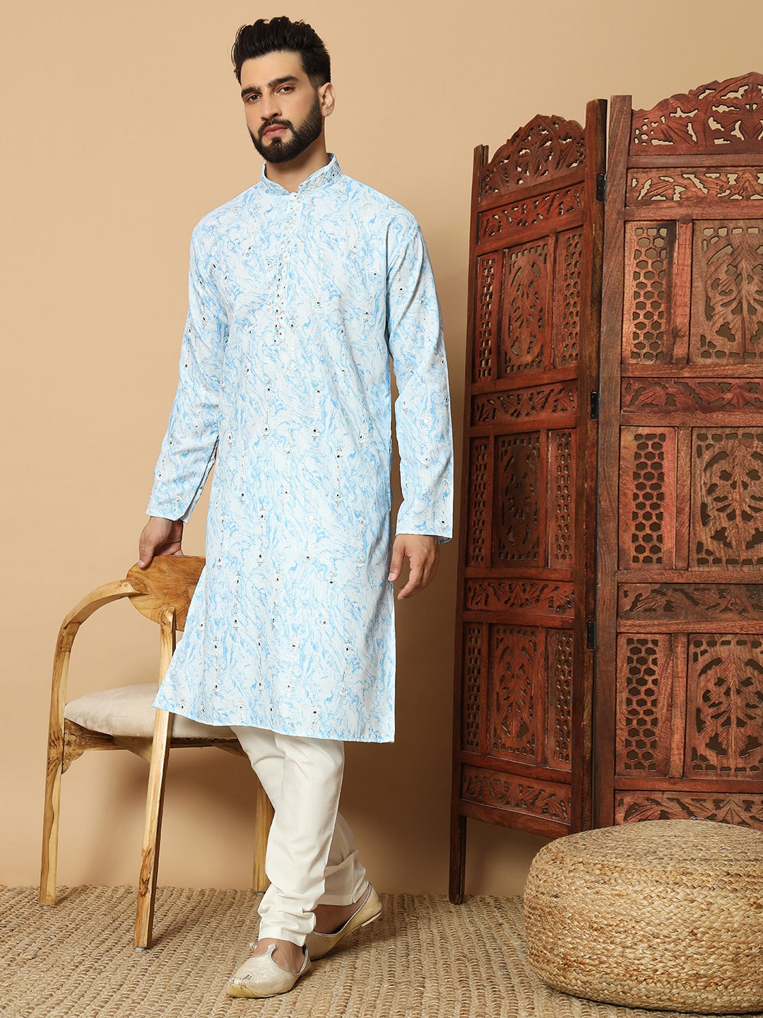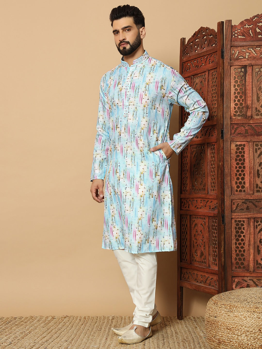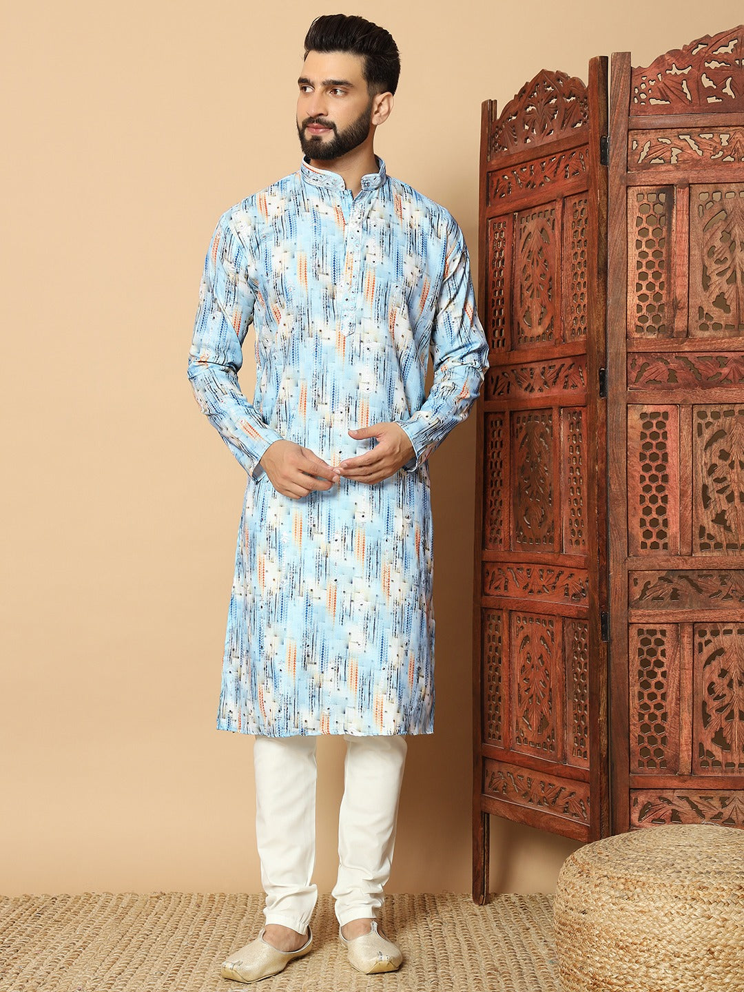 Celebrate every occasion in style with this elegantly crafted kurta, designed to bring together tradition and modern sophistication. Made from premium quality fabric, it offers a perfect balance of comfort and elegance, making it ideal for long festive days and special gatherings. The refined detailing and tailored fit ensure you stand out effortlessly at weddings, cultural events, and family celebrations.